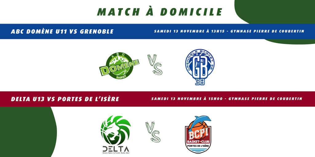 L’ensemble des matchs des équipes de l’ABC Domène durant le week-end du 13 au 14 novembre 2021.