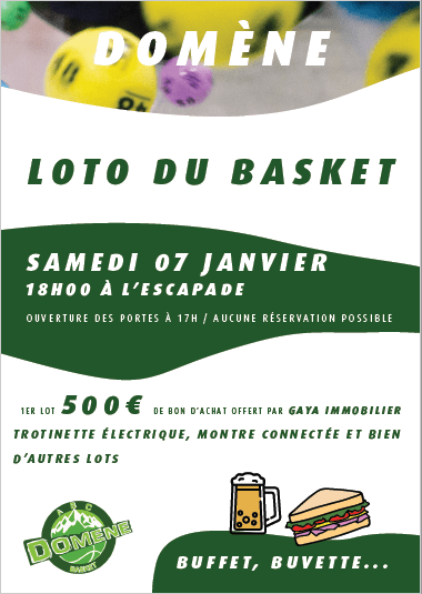 L’ABCD organise, le samedi 7 Janvier 2023, son traditionnel loto de début d’année à 18h. Ouverture des portes à 17h. Aucune réservation possible.