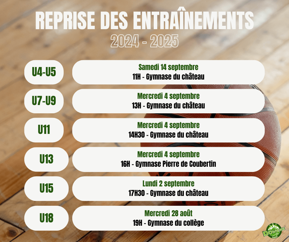 Voici le planning pour la reprise des entraînements de la saison 2024 – 2025.