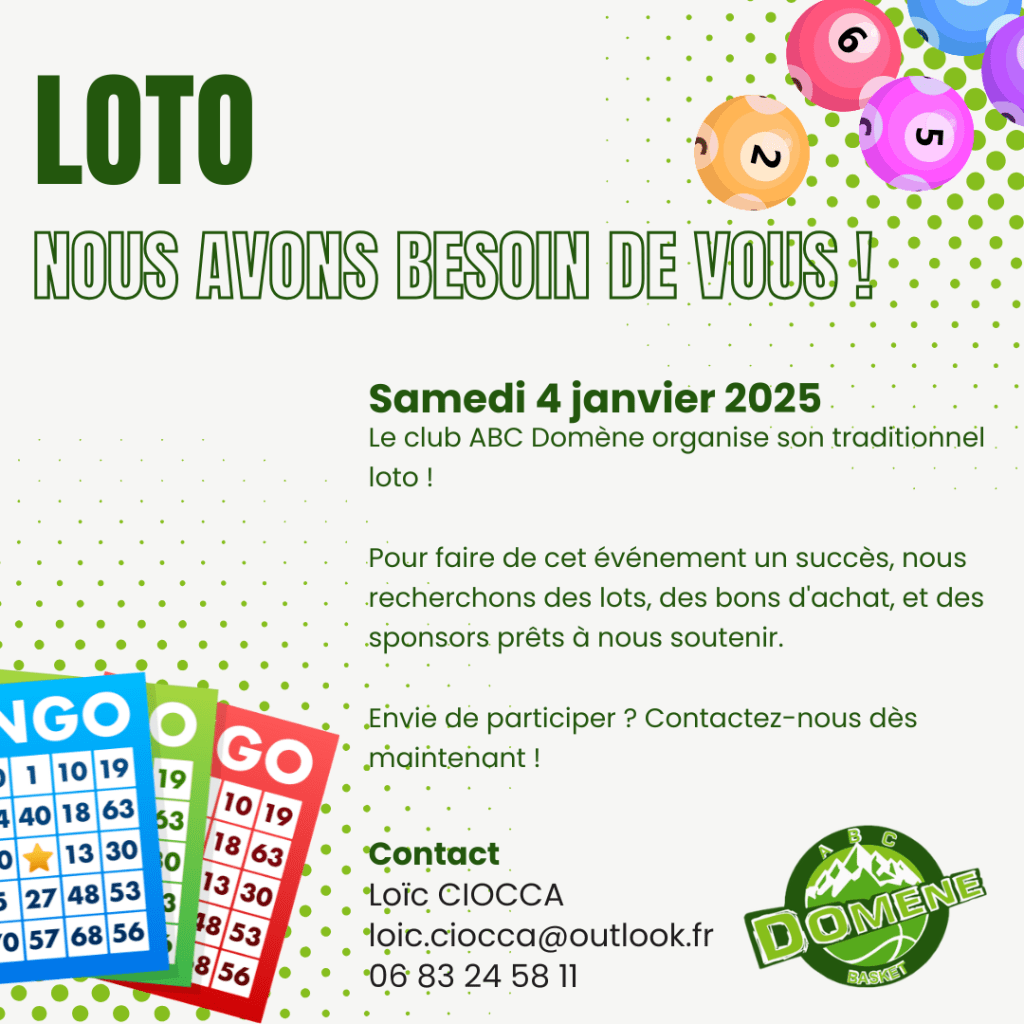 Cette année encore, le club de basket de DomÚne organise son traditionnel loto.